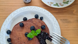 もちっと濃厚♡米粉のココアパンケーキ【ヴィーガンレシピ】