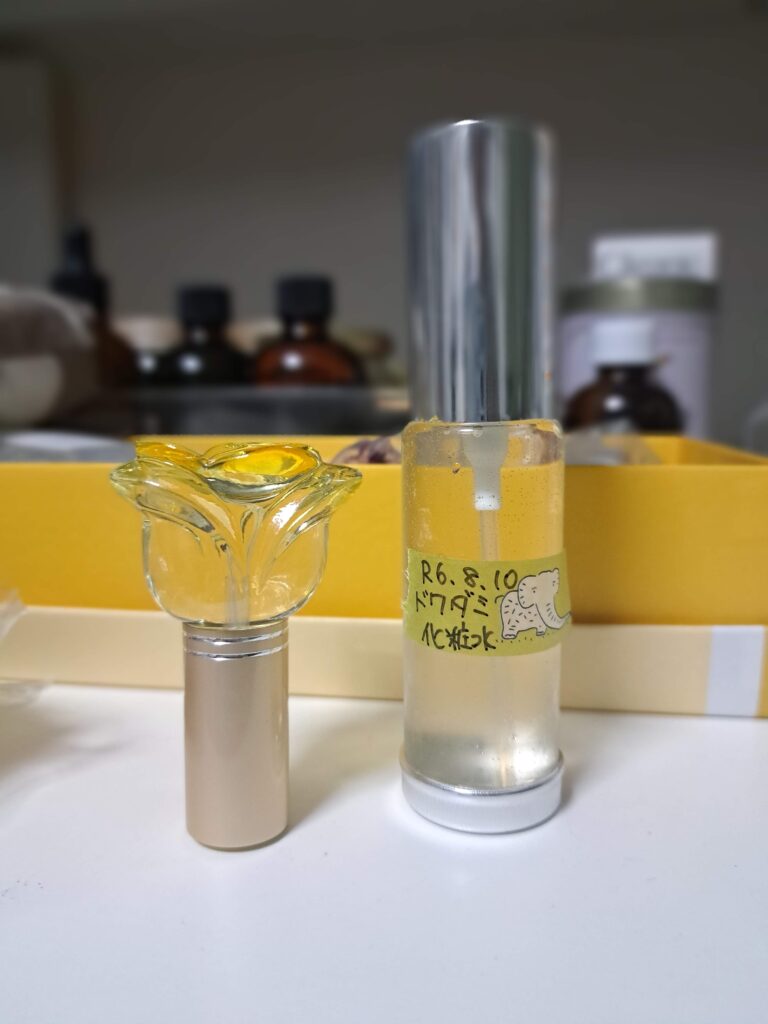 - チンキ、精製水、グリセリンを計量してスプレーボトルに入れる。