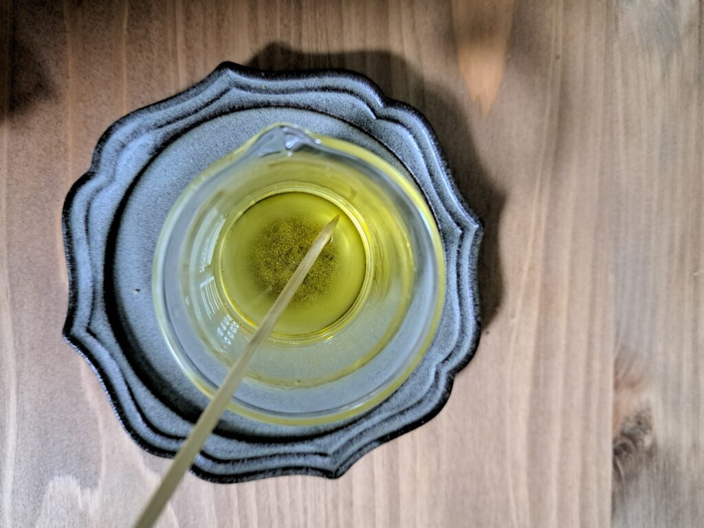 1. ホホバオイルをビーカーに入れて、精油を垂らす